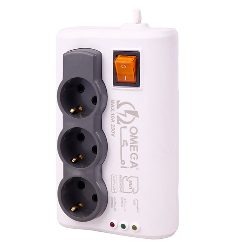 محافظ برق صوتی تصویری 3 خانه ارت دار امگا P3000 با کابل 1.5 متری